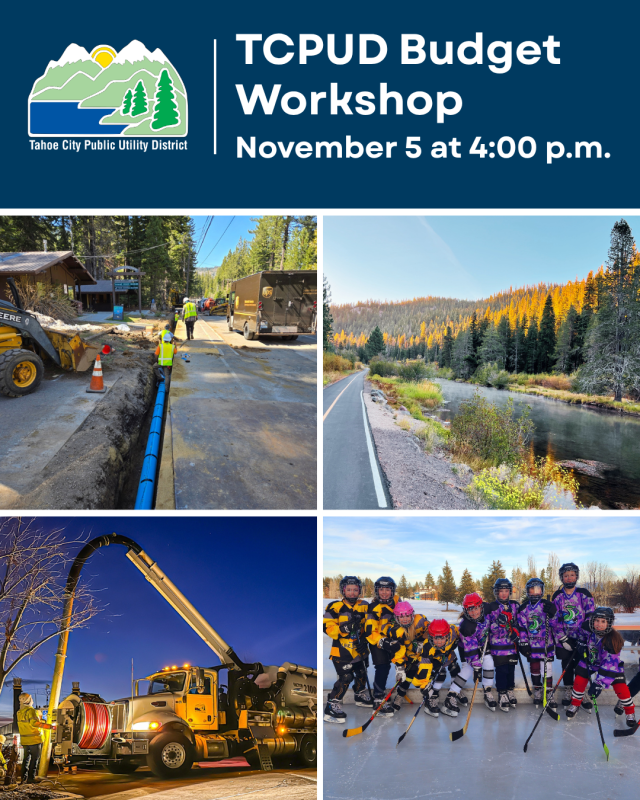 TAHOE CITY, Calif. — The Tahoe City Public Utility District Board of Directors will receive a presentation and hold a public workshop to review the draft 2026 Budget on Wednesday, November 5th, at 4:00 p.m. The workshop will be held in the TCPUD Board Room at 221 Fairway Drive, Tahoe City, CA.
